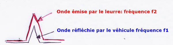 Le radar routier connait sa fréquence (f) et mesure celle qu’il reçoit. Il peut donc calculer la vitesse du véhicule suivant la formule :